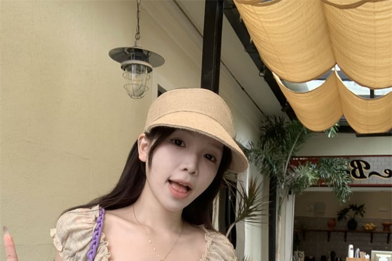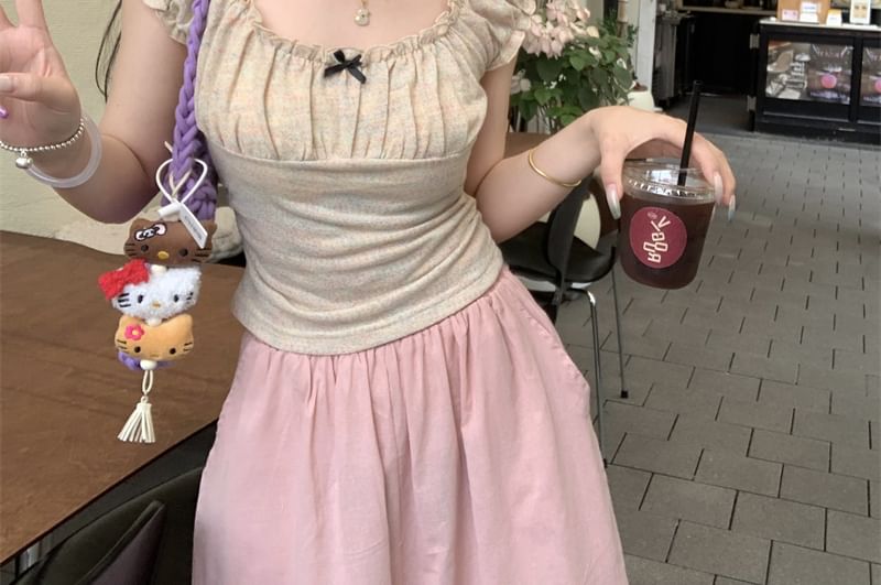 Short-Sleeve Square Neck Bow Ruffle Trim Slim Fit T-Shirt