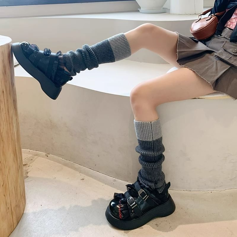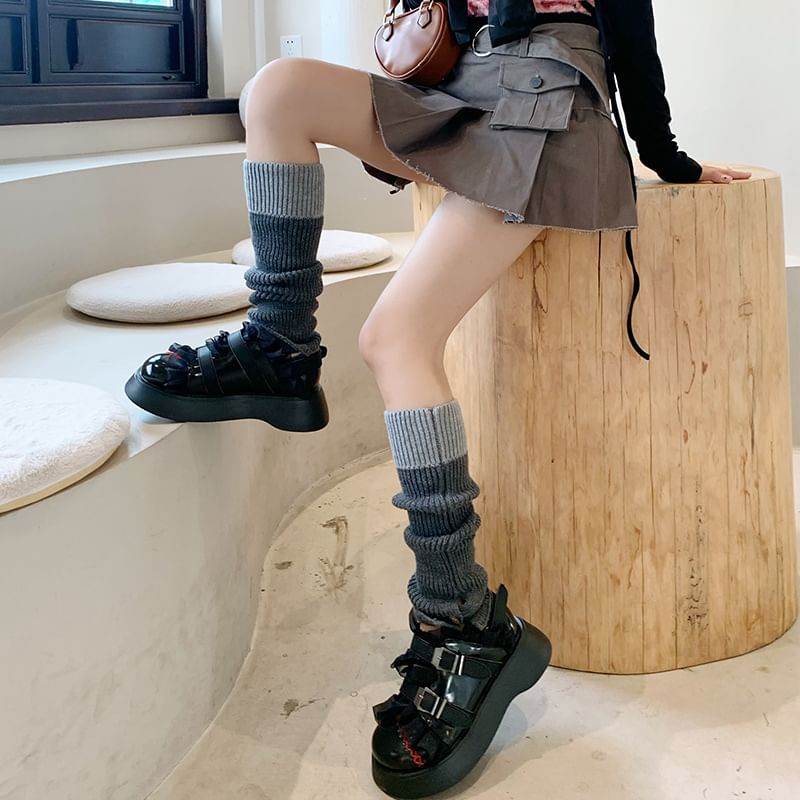 Two Tone Ribbed Knit Leg Warmers