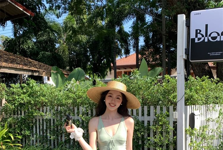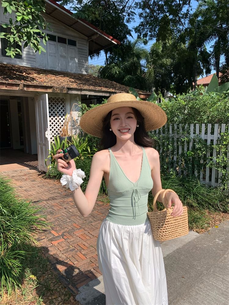V-Neck Camisole Plain Neck Tie Top Spaghetti Strap