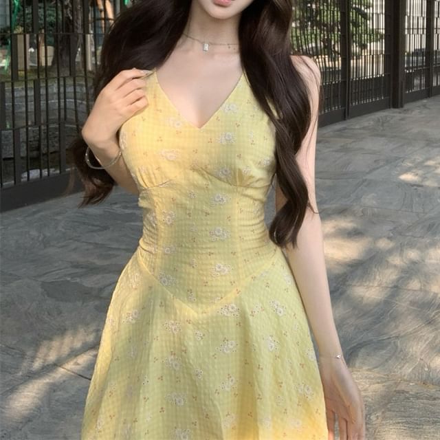V-Neck Sundress Floral Sleeveless Midi